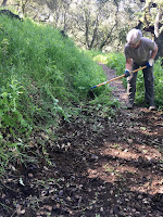 Volunteers and hiking club members met at the Foothill parking lot yesterday at 8.30 AM for a morning of work to maintain and upgrade the trails in our hill lands. This is an annual event of the club and helps keep the switchbacks and narrow trails in good hiking order.