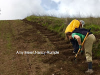 We met at Foothill Center at 8:30 to divide into teams, pickup tools and started departing via mules by 8:45 – 9:00. The main focus today was the upper part of the Rawhide Trail switch backs, that have also been the main focus of the wild pigs in our hill lands! Other areas that crews worked on included the steps on the Meadow Trail going up to the mail box and the Step Trail between Rawhide and the upper garden. We had 30 people show up to make today a great success.