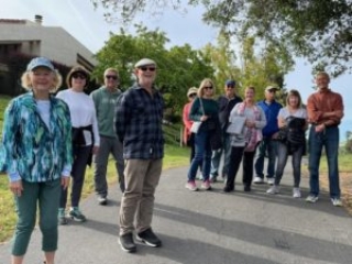 The group met at the parking lot next to the Villages entry gate at 8:50am and left at 9:00am. They walked up to Yerba Buena and across to the community college and walked up the hill to the observatory and then along the buildings teaming with all the new students. Th e new park inside the college we’ve watched being built, has been completed and is a pleasant destination.