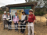 A group of ten long hikers and ramblers did a combined hike at Sweeney Ridge near San Bruno on Saturday September 16th. They started at the trail head on Sneath Lane and hiked up to the top of the ridge, a vertical climb of about 1000 ft, to the spot where Spanish explorer Portola first saw San Francisco Bay. After that they hiked up the Baquiano Trail to a spot where they had lunch and saw beautiful views of the town of Pacifica. They then hiked back up up the Baquiano trail to the old Nike missile site and finally back down to the trail head. Total distance was about 8 miles. After the hike all had lunch at Nick’s restaurant in Pacifica.