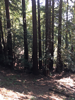 Amy Meier led a hike in the Purisima open space area on Saturday, August 19th, starting at the trail head near Highway 1, south of half Moon Bay. The trail was through redwood trees with sunny areas with grass and chaparral. The nearby ocean keep the group cool. The elevation difference was about 1800 ft