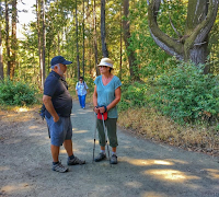 Ramon and Marianna Reza led a hike on the Cogswell Marsh Trail on Wednesday, August 9th. The flat gravel trail begin and ended at the Hayward Shoreline Interpretive Center and was 3.6 miles long round trip. It skirted along a freshwater marsh a haven for migrating birds reaching the SF Bay. The SF and Oakland skylines could be seen across the water.