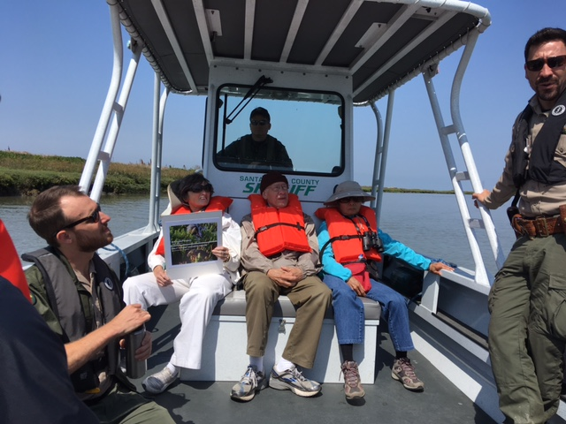 Bonnie Preston led an outing on a Salt Marsh Safari boat tour through the Alviso Slough to explore the natural history of the South San Francisco Bay on Wednesday, August 16th. This free program is sponsored by the Santa Clara Park and Recreation District and is an educational boat tour where we learned about the natural history of the South San Francisco Bay and how the landscape has changed over time.