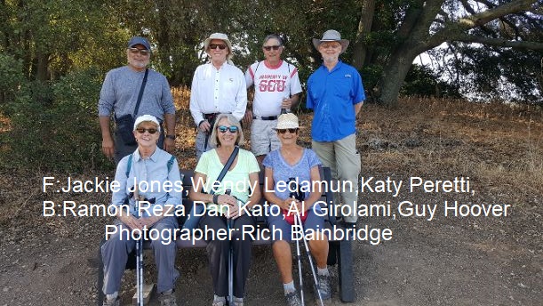On Wednesday, August 8th Ramon and Marianna Reza led a hike to the Sawyer Camp Trail. The 11.3-mile trail runs through Redwood City, San Mateo, and Burlingame. The group hiked about 5-6 miles “in and out” on a flat paved portion of the trail. The trail ran along the Crystal Springs Reservoir and provided some tree shade.