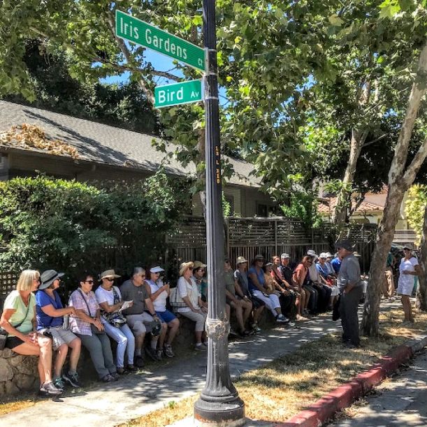 Liz Giarratana led a relaxing, walking, talking and gawking urban hike through the historic older part of Willow Glen in central San Jose on Wednesday, July 11th. The three-hour history walk took us through architecturally unique neighborhoods of Victorian, Craftsman, Spanish Mission, and many other home styles. Liz’s presentation was very interesting and informative.