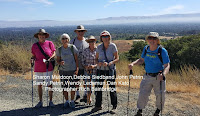 Wate and Johanna Bakker led hikes on the trails around Mt. Umunhum. Both Long Hikers and Ramblers started at the top parking lot where they were able to visit the nearby exhibits, and enjoy the panoramic views before descending on the trail towards Mt. Baldy. Ramblers hiked to the first observation deck before returning to the parking lot, a distance of approximately 3.5 miles. Long Hikers hiked to end of the trail and returned, a distance of approximately 7.5 miles. Trails were engineered to maintain a consistent 10% grade. Total elevation for the long hikers was approximately 1150 feet, less for Ramblers.