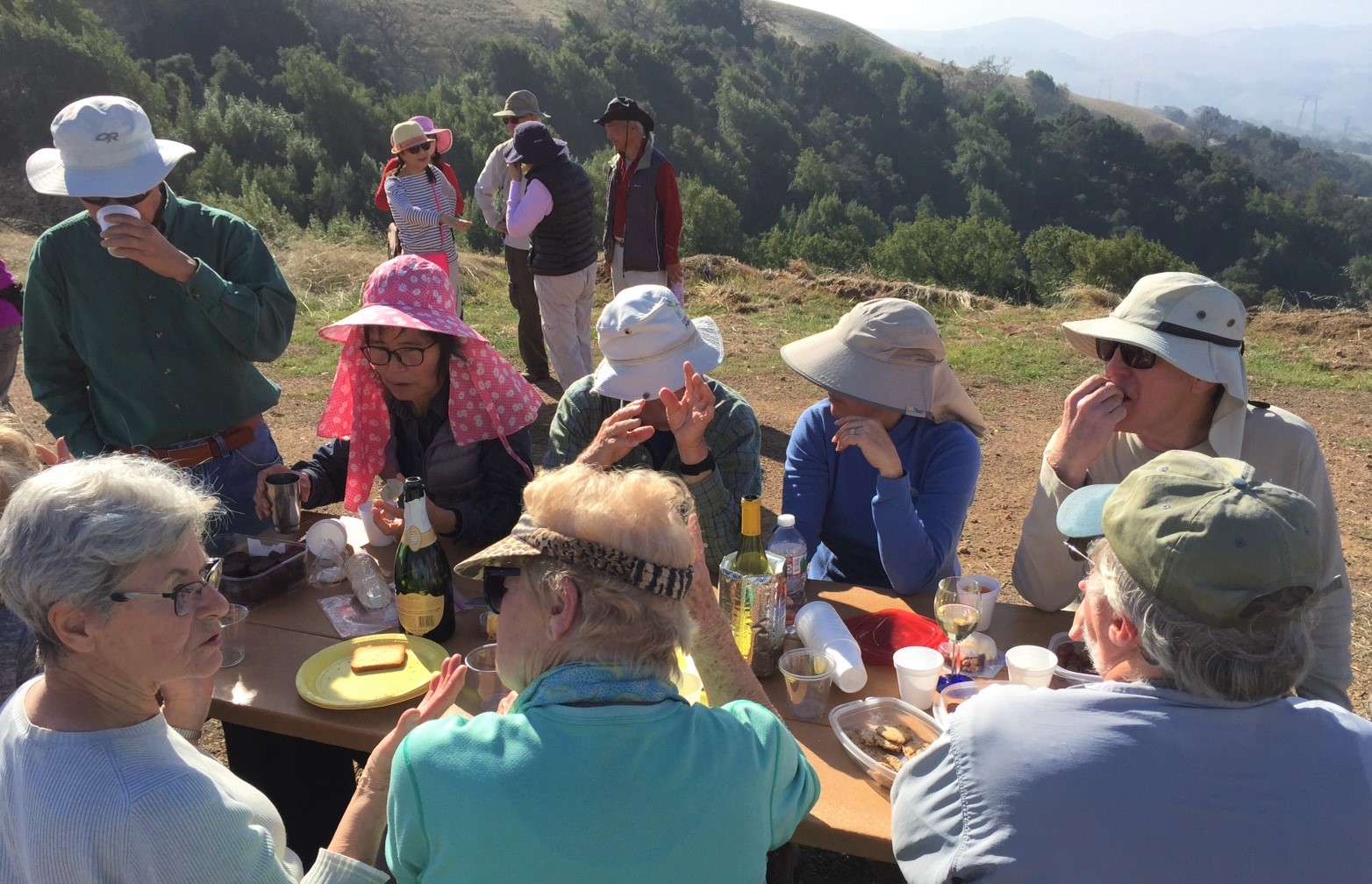Wate and Johanna Bakker led fourteen Ramblers on a four-mile hike in Shoreline Park on Wednesday, January 10th. After two days of rain, the all weather paths at Shoreline proved to be a perfect choice. The cool morning provided a perfect setting for large flocks of birds. As usual, the hike ended at the Shoreline Cafe with a hearty extended lunch and much conversation.