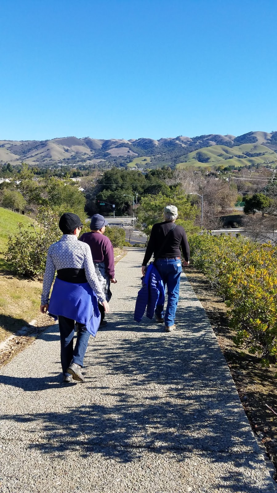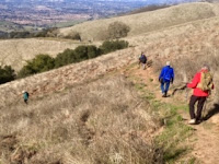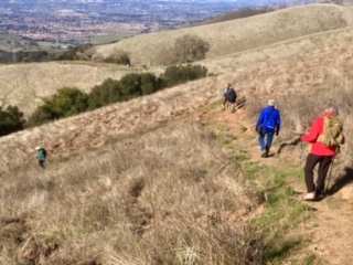 The Hiking Club once again celebrated New Year’s Day at the top of our tallest hill, at 2,300 ft. elevation. Rich Bainbridge lead the long hikers to the top, starting from Foothill Center, leaving at 9:30AM. The celebration started at about 11:30 AM at the top of the hill. Total hiking distance was 4-5 mile round trip, depending on which trails were taken. For a more leisurely pace and a slightly shorter distance, some of the hikers started at the upper garden parking lot and went to the picnic table by Ohlone and Skyway.