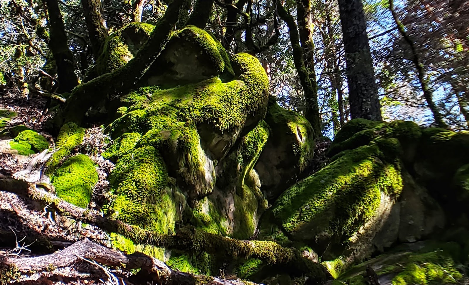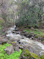 Susan Brown led a 6 mile hike to the South Rim Trail in Alum Rock Park Saturday 3/9. The weather was cloudy with some sun and it didn’t rain till after we got back. Other than a very few muddy spots, there were no problems on the trail. The park was very green with the creek full of running water–. The rushing water was so loud that we heard it way up on top of the hill.  Â