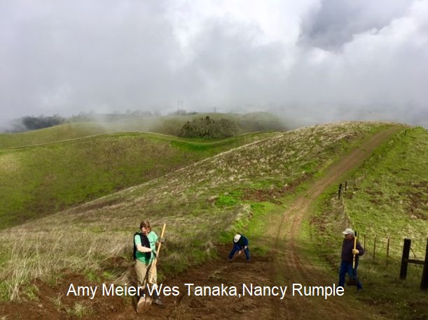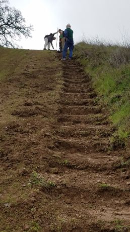 We met at Foothill Center at 8:30 to divide into teams, pickup tools and started departing via mules by 8:45 – 9:00. The main focus today was the upper part of the Rawhide Trail switch backs, that have also been the main focus of the wild pigs in our hill lands! Other areas that crews worked on included the steps on the Meadow Trail going up to the mail box and the Step Trail between Rawhide and the upper garden.  We had 30 people show up to make today a great success.Â