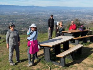 An inspired group of 23 hikers showed up to hike the hill this morning, and 9 made it to the top. They were L-R, Joan, Kris, Mira, Bob, Gigi, Steve, David, Mary with Gordon behind the camera.