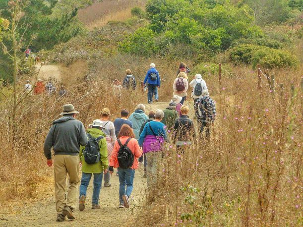 The club traveled to Point Reyes a prominent cape and popular Northern California tourist destination on the Pacific coast from Tuesday, September 18th through Thurday the 20th for the fall outing. It is located in Marin County approximately 30 miles west-northwest of San Francisco. The term is often applied to the Point Reyes Peninsula, the region is bounded by Tomales Bay on the northeast and Bolinas Lagoon on the southeast. The headland is protected as part of Point Reyes National Seashore. On Tuesday the group traveled north to The Presidio National Park at the Golden Gate Bridge. From there, they enjoyed a leisurely hike along the Ecology Trail.  In addition to the fauna and flora, the Ecology Trail also boasts access to arguably the best viewing area in the Presidio (it’s hard to choose – there are so many!) At Inspiration Point Overlook they enjoyed an eyeful of the bay, Alcatraz (or “The Rock”), Angel Island, and Andy Goldsworthy’s imposing Spire sculpture to the west. From there they took a connecting trail to  El PolÃn Spring, a wildlife hotspot, where hummingbirds and butterflies dance.Â