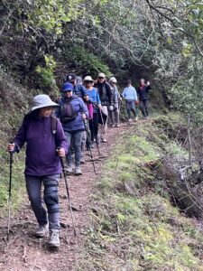 Gordon Carbonetti and John Zhang led a group of eleven hikers to Pinnacles National Park on Thursday, October 30, 2025. L-R Kris Carlsen, John Zhang, Joan Cheung, Mira Dytko, Mimi Rong, Al Girolami, Marty Funcell, Tim Robinson, Matt Cheung and Gigi Clarke, with Gordon behind the camera. It was a tough, nearly 6-mile hike with incredible views. Tim, Kris and Gordon even made it thru the caves near the end of the hike. (See more pictures under photos of past events.)