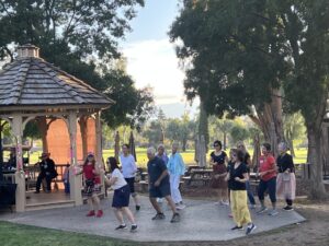 The end of Summer Picnic was held at Gazebo Park. There was a catered Mexican Buffet, music by DJ Ed Knott and entertainment by the Village Dancers. About 90 hiking club members attended.